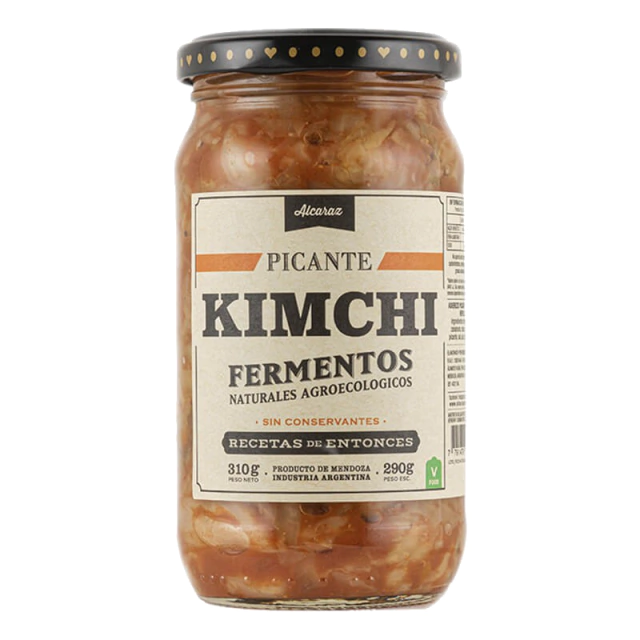 ALCARAZ picante kimchi es un fermento natural elaborado con vegetales seleccionados de origen agroecológico, que ofrece un sabor profundo y un toque picante característico. Ideal para acompañar platos, sumar a bowls, ensaladas, sandwiches o como guarnición, aporta personalidad y un perfil auténtico a las comidas.