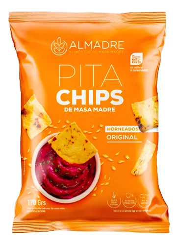 Disfrutá los Almadre Pita Chips Original, elaborados con masa madre y horneados hasta alcanzar la textura perfecta.