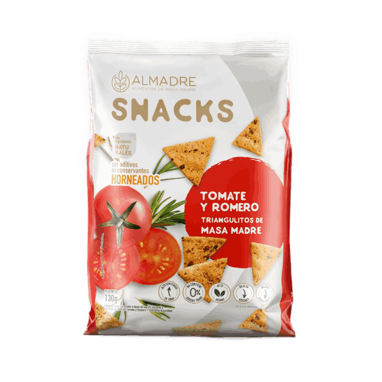 Disfrutá los Almadre Pita Chips Tomate y Romero, horneados y hechos con masa madre.