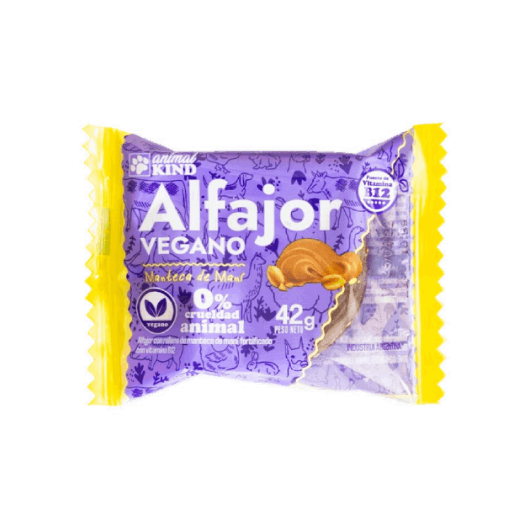 El Alfajor Vegano ANIMAL KIND de manteca de maní 42g combina sabor artesanal y consciencia vegetal en una experiencia deliciosa.