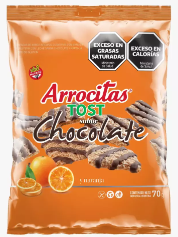Arrocitas sabor chocolate y naranja son un snack crujiente elaborado a base de arroz, cubiertas con chocolate y un delicado toque de naranja que aporta un sabor equilibrado y diferente.