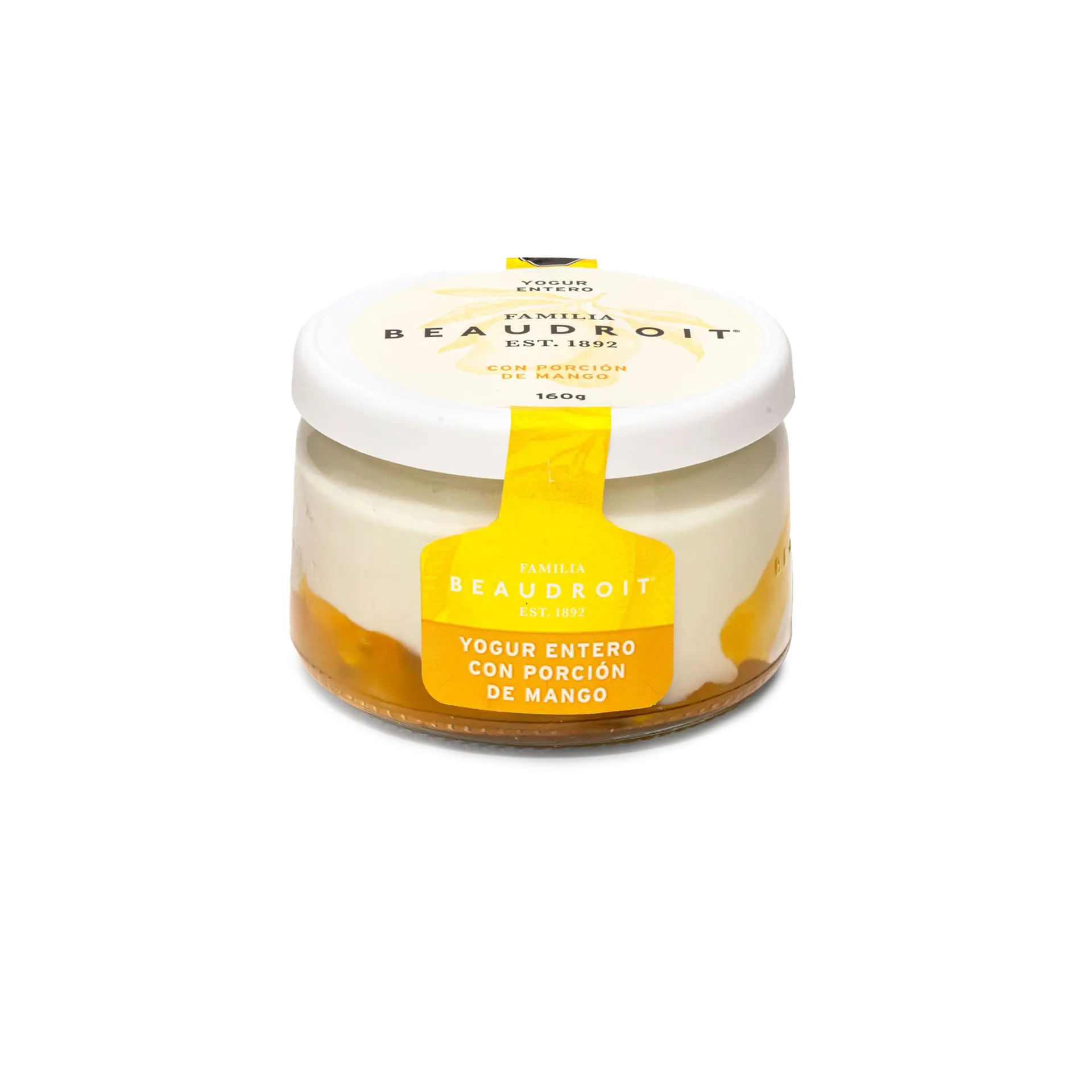 BEAUDROIT yogurt entero mango 160g ofrece una textura bien cremosa y un sabor tropical exquisito a mango, ideal para quienes buscan un yogurt más completo y lleno de sabor.