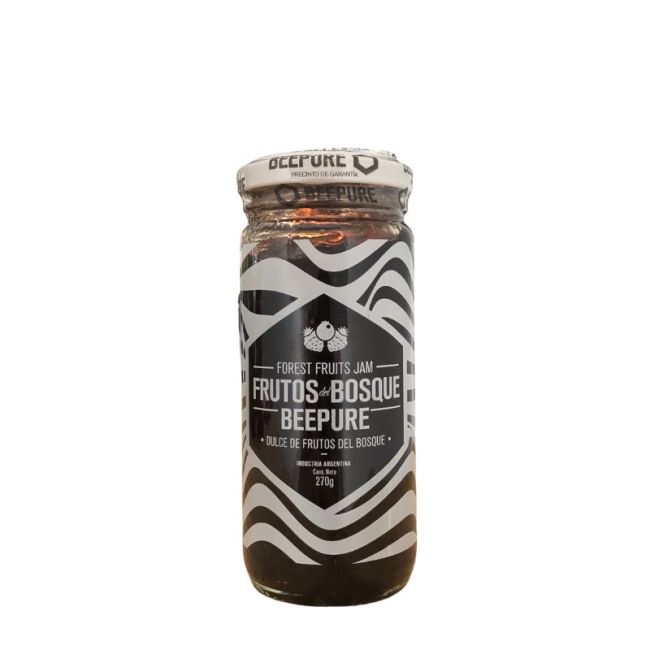 Mermelada BEEPURE elaborada con una combinación equilibrada de frutos del bosque, logrando un sabor intenso y natural.
