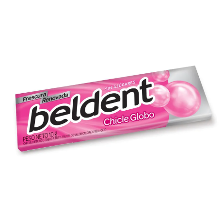 BELDENT chicle globo 10g es un chicle sin azúcar que revive el sabor tradicional del chicle globo, ideal para quienes disfrutan de una experiencia dulce y entretenida.