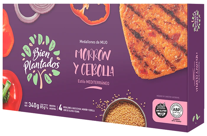 Los BIEN plantados medallones estilo mediterráneo 320 g morrón cebolla combinan ingredientes vegetales inspirados en la cocina mediterránea, logrando un sabor aromático y natural. El morrón aporta un toque dulce y la cebolla profundidad de sabor, resultando en un medallón jugoso y versátil.