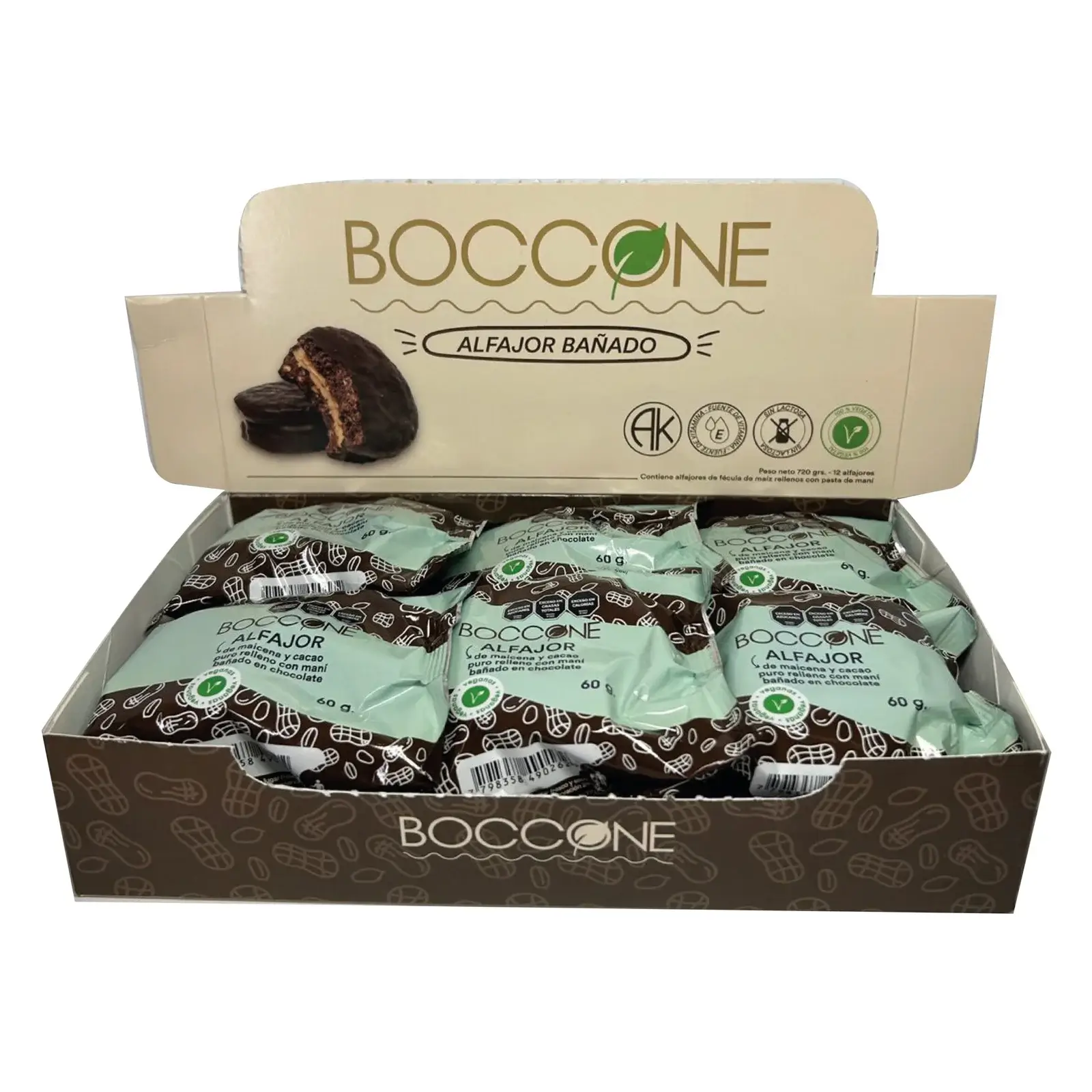 El alfajor maní y chocolate BOCCONE combina el intenso sabor del maní con una capa de chocolate delicioso, envuelto en una masa suave y tentadora. Ideal para acompañar un café, té o como merienda dulce, este alfajor ofrece un balance perfecto entre el toque salado del maní y la dulzura del chocolate.