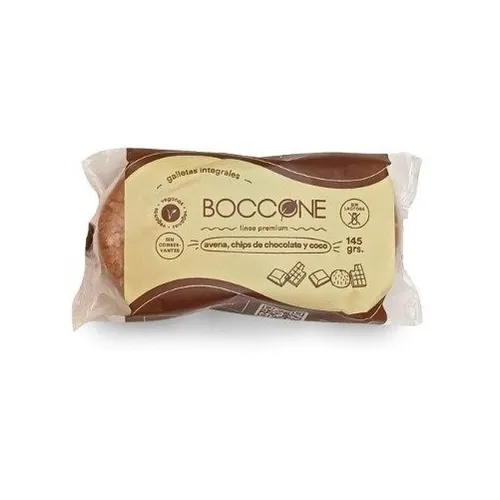 Deliciosas galletas elaboradas con avena, chips de chocolate y coco rallado que aportan una combinación perfecta de sabor y textura.