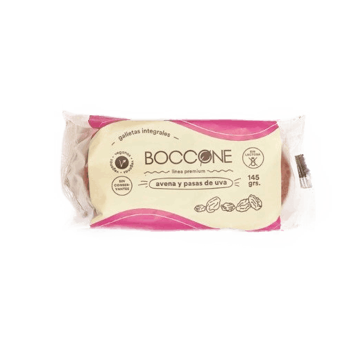Las galletitas Boccone avena y pasas de uva (145 g) son un snack saludable pensado para quienes buscan sabor y bienestar en cada bocado. Están elaboradas a base de avena y harina integral de trigo enriquecida, combinadas con pasas de uva que aportan un toque dulce natural y una textura suave.
