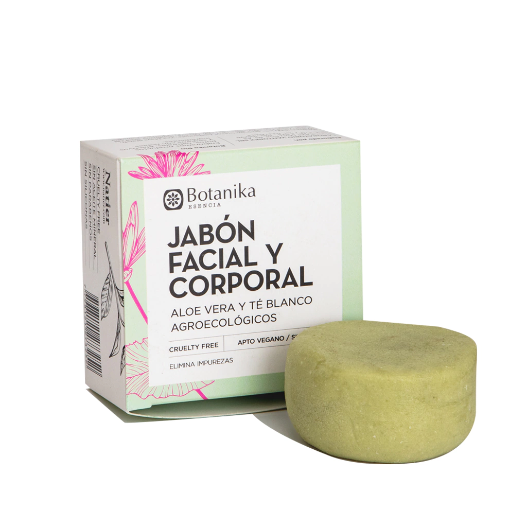 BOTANIKA jabón facial y corporal aloe vera y té blanco está formulado para limpiar la piel de manera suave y efectiva. El aloe vera ayuda a hidratar y calmar la piel, mientras que el té blanco aporta propiedades antioxidantes que contribuyen a protegerla de los agentes externos.