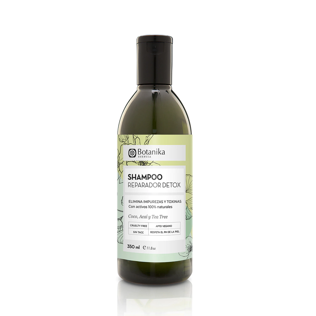 Shampoo detox reparador, formulado con coco, acai y tea tree, diseñado para eliminar impurezas y toxinas del cabello y cuero cabelludo. Su fórmula revitalizante purifica el cabello, dejándolo limpio, suave y con una sensación de frescura duradera.