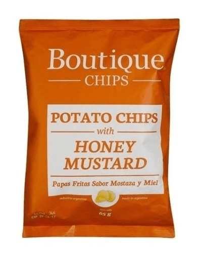 BOUTIQUE papas fritas mostaza y miel 65g ofrecen una combinación única de sabores donde la suavidad dulce de la miel se mezcla con el toque intenso de la mostaza.