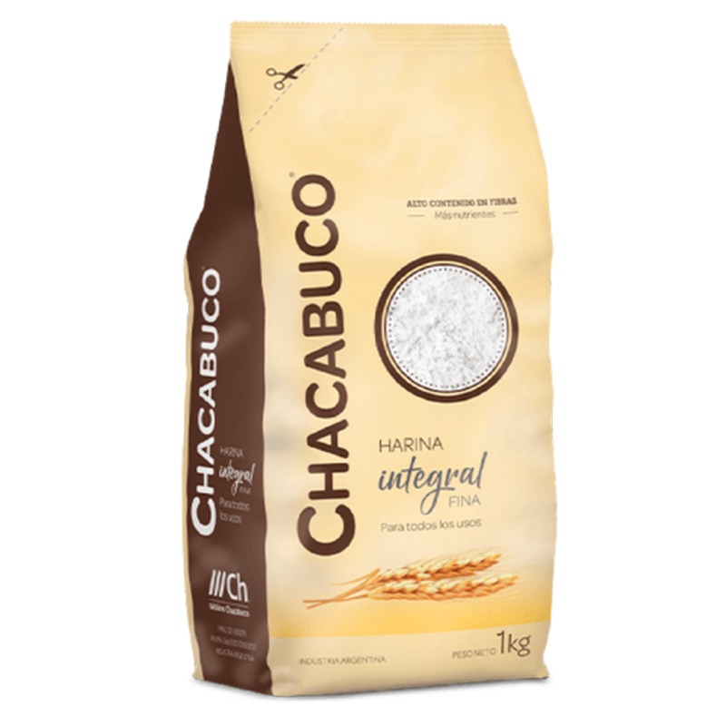 CHACABUCO harina integral fina 1kg está elaborada a partir de trigo integral de alta calidad, molido fino para facilitar su uso en diversas preparaciones. Ideal para panes, tortas, galletas y otras recetas, aporta fibra, minerales y sabor natural en cada preparación. Una opción saludable y práctica para quienes buscan enriquecer sus recetas con ingredientes nutritivos y de sabor auténtico.