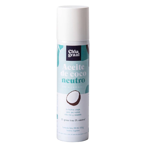 Aceite de coco refinado en formato aerosol, ideal para cocinar de forma práctica.