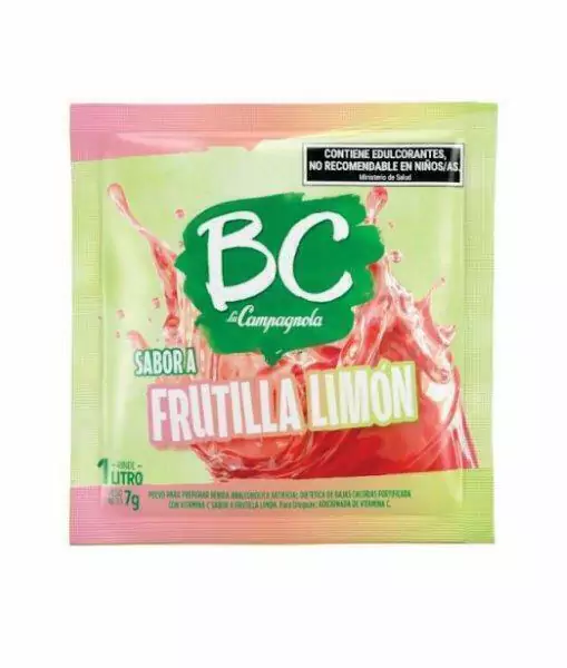 Bebida en polvo sabor frutilla y limón.