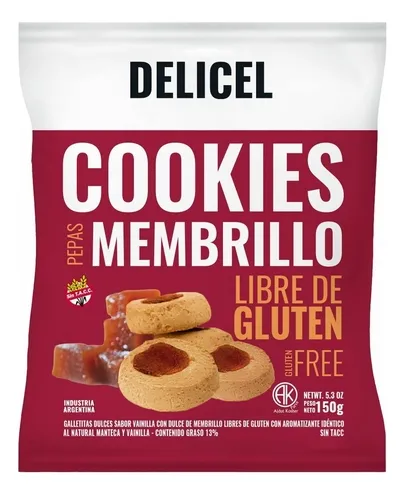 Galletitas tipo pepas con relleno de membrillo, libres de gluten.