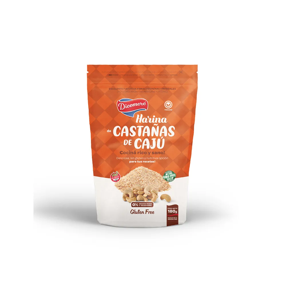 Harina obtenida de castañas de cajú molidas, ideal para repostería y recetas saludables.
