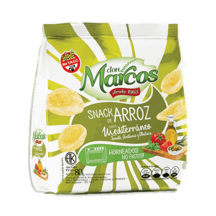 Snack de arroz con sabor inspirado en especias mediterráneas.