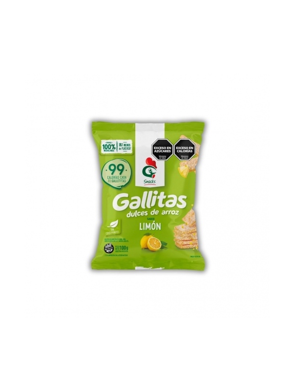 Gallo Snacks Galletas Dulces Sabor Limón 100 g combinan la ligereza del arroz inflado con un toque cítrico refrescante que las hace irresistibles. Ideales para disfrutar entre comidas, acompañar tu té o café, o simplemente darte un gusto dulce y liviano.