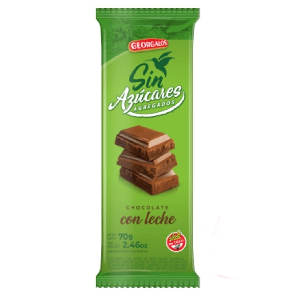 Georgalos Sin Azúcar Agregados Chocolate con Leche 9g es el bocado perfecto para quienes buscan un pequeño mimo dulce sin sumar azúcares agregados.