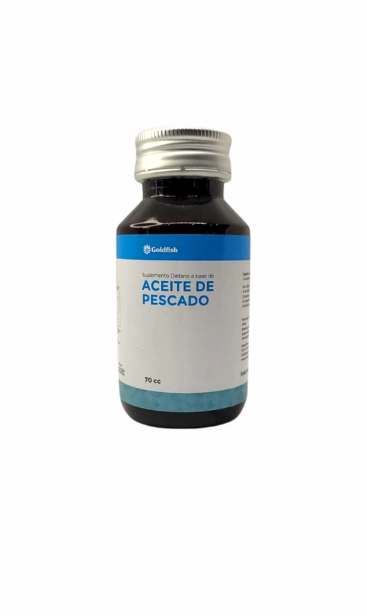 El GOLDFISH Aceite de Pescado 70cc es una fuente natural de ácidos grasos esenciales Omega 3, conocidos por sus beneficios para la salud del corazón, el cerebro y las articulaciones.