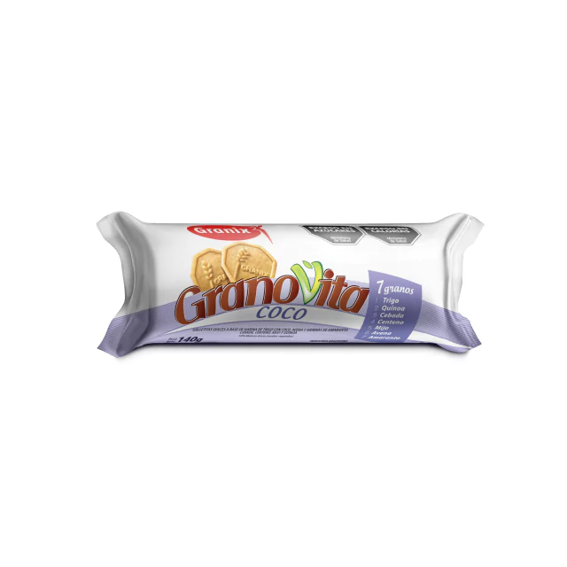 Las galletitas Granovita Coco de GRANIX combinan cereales integrales seleccionados con el sabor natural del coco, ofreciendo un snack nutritivo y lleno de fibra.