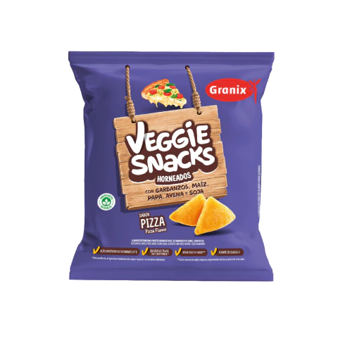 Los Veggie Snacks Sabor Pizza de GRANIX combinan vegetales deshidratados y cereales en un snack crujiente y lleno de sabor.