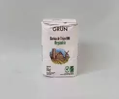 Harina de trigo 000 orgánica GRUN, obtenida a partir de granos seleccionados y cultivados bajo prácticas orgánicas.