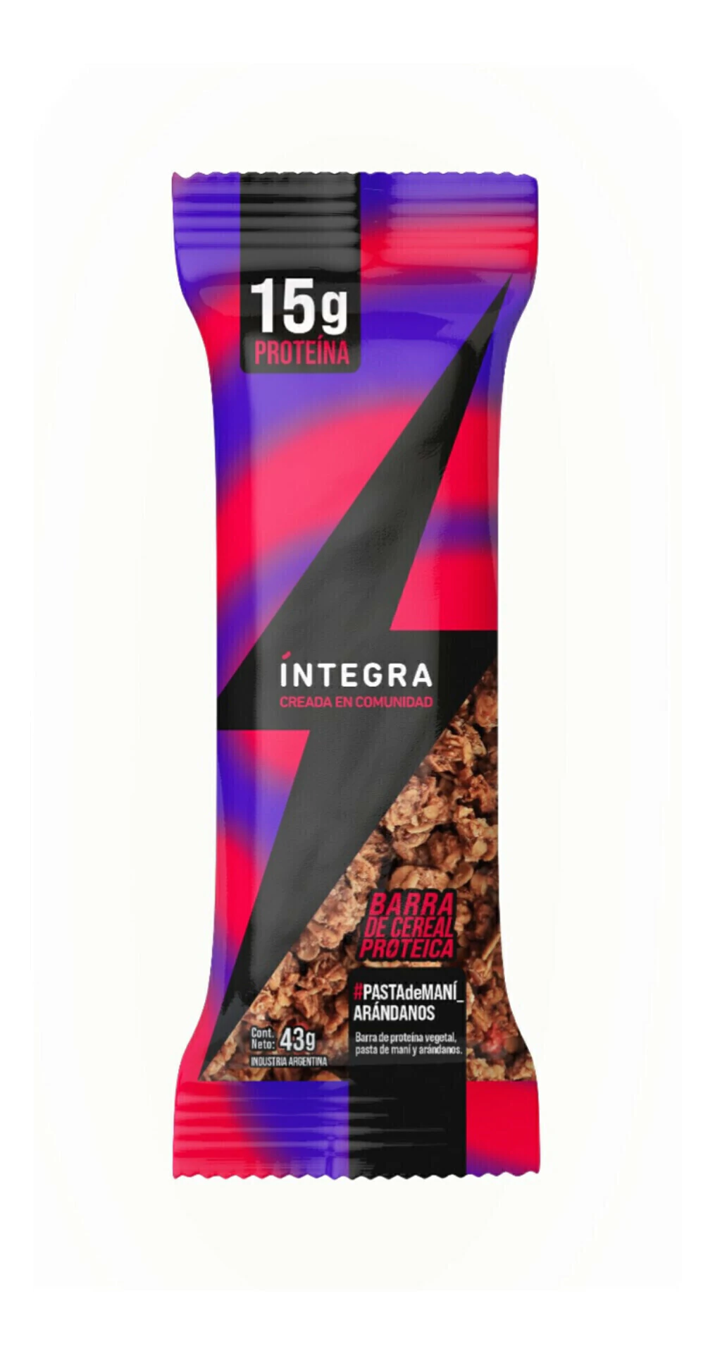 La INTEGRA barrita proteica pasta de maní arándano de 75 g ofrece una mezcla deliciosa entre la suavidad y cremosidad de la pasta de maní y el toque frutal levemente ácido de los arándanos.
