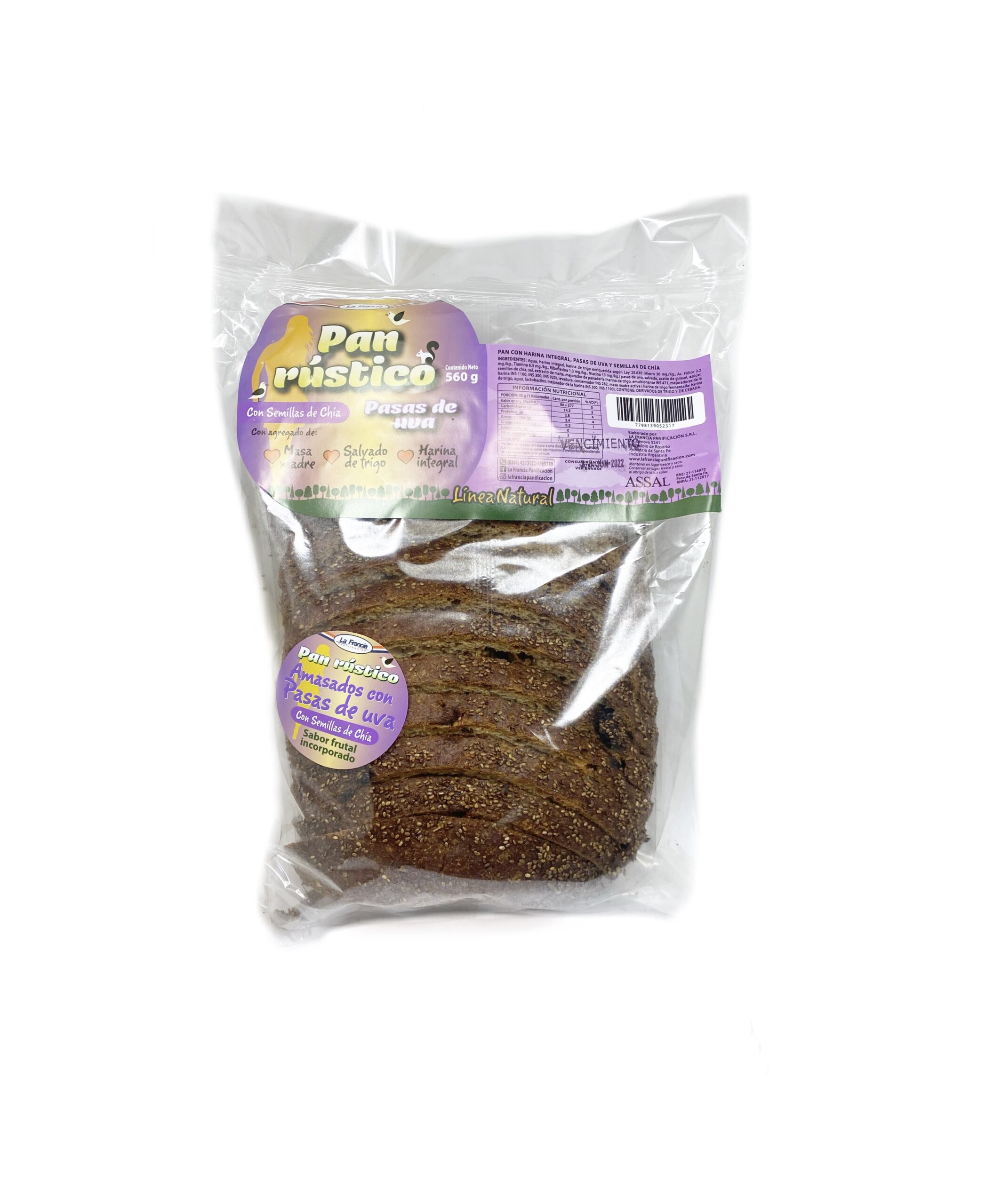 Pan rústico elaborado con semillas de chía y pasas de uva que combinan sabor, textura y valor nutricional.