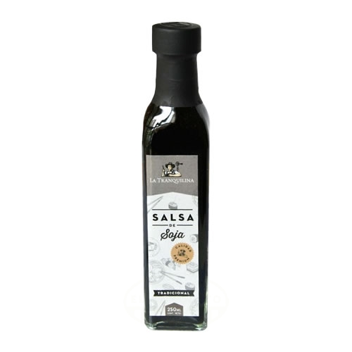 LA TRANQUILINA salsa de soja tradicional 250ml es perfecta para realzar el sabor de tus comidas, desde salteados hasta adobos y marinadas. Con un sabor auténtico y balanceado, aporta un toque umami que resalta cada ingrediente, siendo un aliado esencial en la cocina diaria.