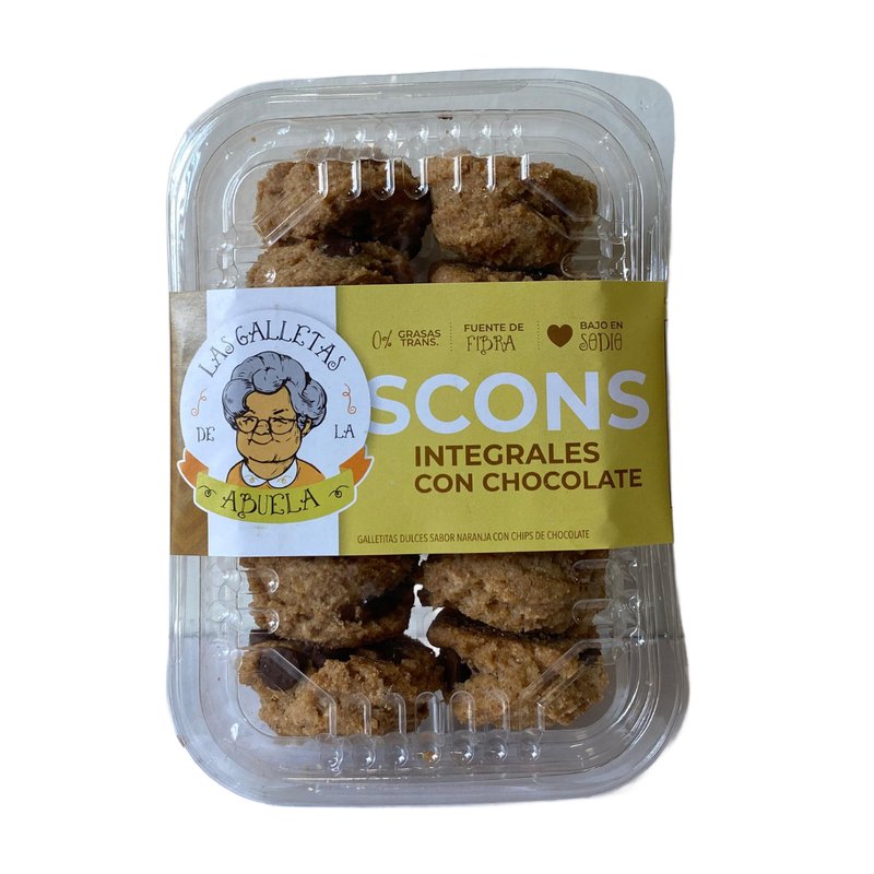Las Galletas de la Abuela Scons Integrales con Chocolate combinan la riqueza de los granos integrales con trozos de chocolate, ofreciendo un bocado tierno y lleno de sabor. Elaboradas de manera artesanal, son ideales para acompañar el té, el café o disfrutar como snack saludable, aportando energía y placer en cada mordida.