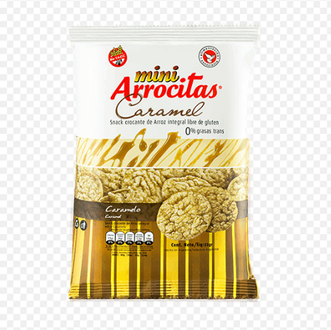 Mini Arrocitas sabor caramelo son un snack crujiente a base de arroz, con un exquisito toque dulce de caramelo.