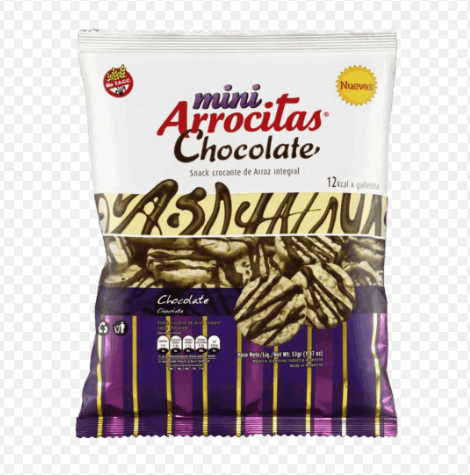 Mini Arrocitas sabor chocolate son un snack crujiente a base de arroz, cubiertas con un delicioso toque de chocolate que las hace irresistibles.