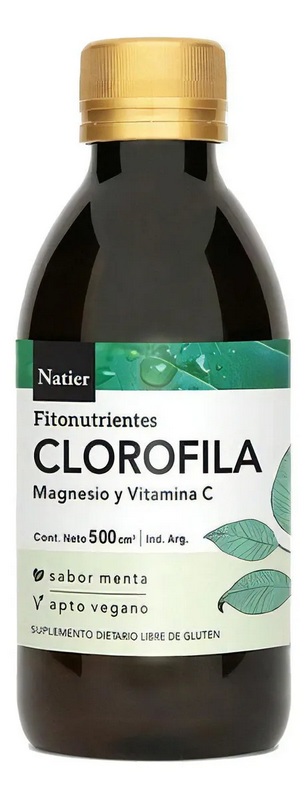 Natier obtiene su concentrado bebible combinando 3 fuentes naturales que aportan todos los beneficios de este maravilloso activo vegetal; alfalfa, spirulina y espinaca. Sus beneficios más importantes son: ayuda a eliminar toxinas del cuerpo equilibrando su metabolismo, mejorando la apariencia de la piel y disponiendo de mayor energía de una forma natural. Combate el estrés oxidativo, estimula la producción de flora bacteriana indispensable para un correcto proceso digestivo y calma la acidez estomacal. Además actúa como un desintoxicante general, regula el pH en dietas alcalinizantes y combate el mal aliento (Halitosis). Ingredientes: Agua purificada, Glicerina vegetal, Espinaca (Spinacea oleracea L.), Alfalfa (Medicago sativa L.), Espirulina (alga), Aloe barbadensis Miller, acido cítrico, vitamina C, sabor Mentha piperita, Benzoato de Sodio y Vitamina E.