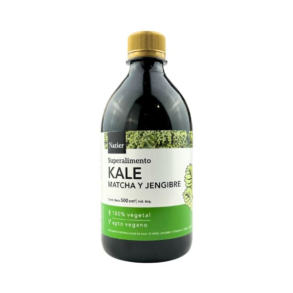 l jugo combinado de Kale, Matcha y Jengibre es un superalimento rico en Hierro, Calcio, Magnesio, Omega-3 y Vitaminas C, K y A que reúne todos los principios activos necesarios para ofrecer un gran número de beneficios.