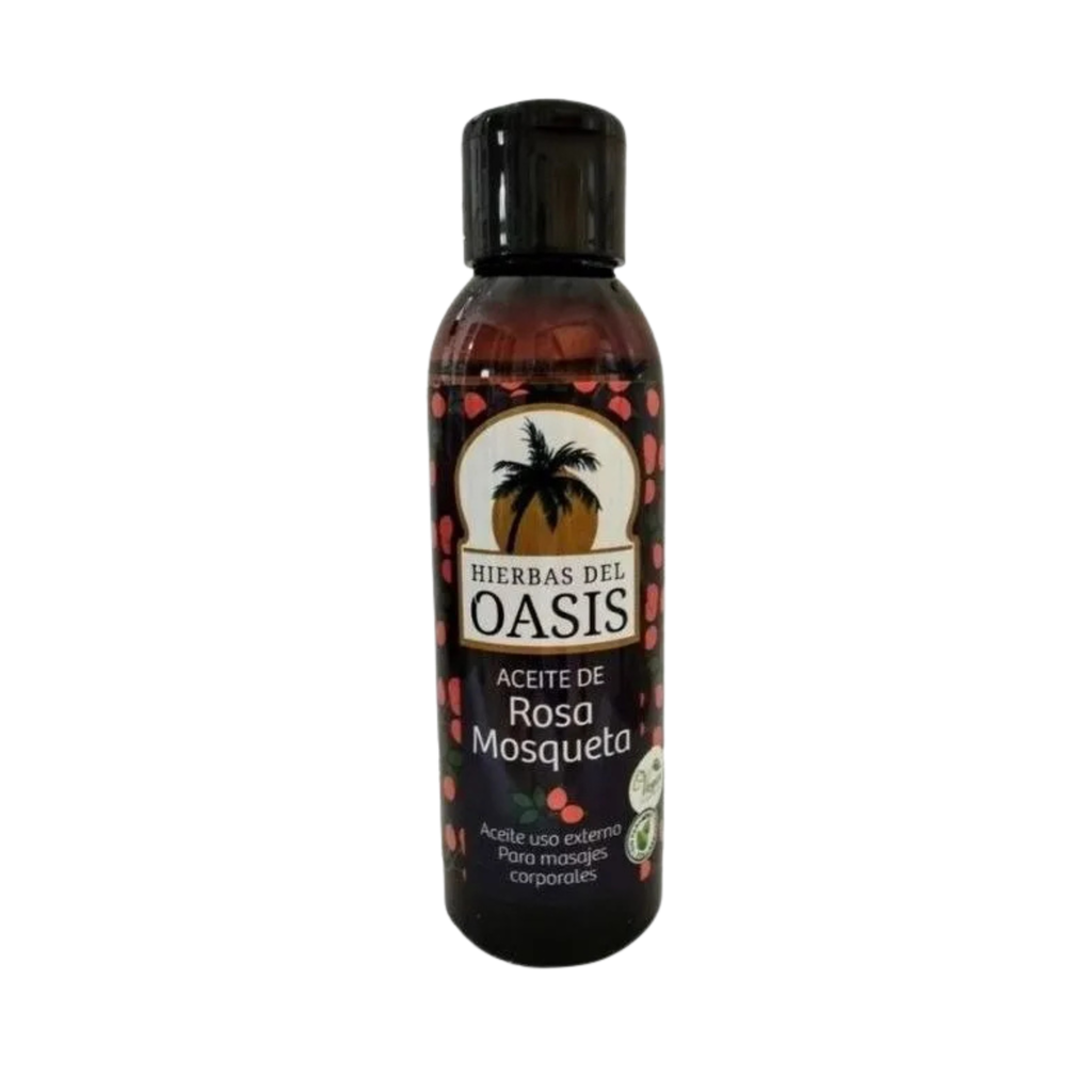 Oasis aceite de rosa mosqueta 60 cc está elaborado con aceite puro de rosa mosqueta, reconocido por sus propiedades regeneradoras y nutritivas para la piel.