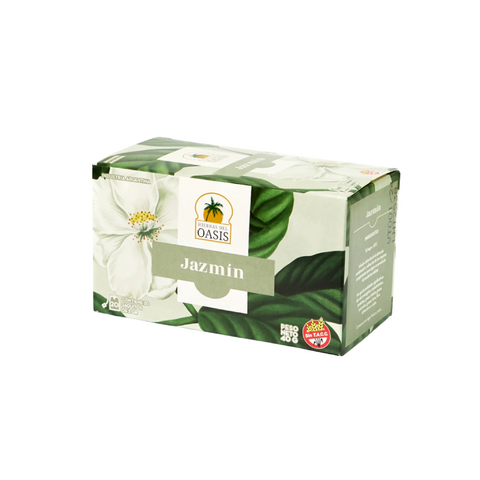 Oasis té jazmín está elaborado con hojas de té y flores de jazmín seleccionadas, que aportan un aroma floral sutil y un sabor suave y delicado.