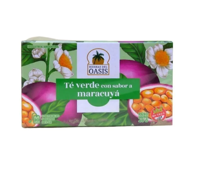 Oasis té verde con maracuyá combina las propiedades del té verde con el aroma y sabor tropical de la maracuyá, creando una infusión equilibrada y refrescante.