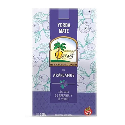 Oasis yerba mate arándano 500 g combina hojas seleccionadas de yerba mate con arándanos naturales, creando una infusión equilibrada, aromática y deliciosa.