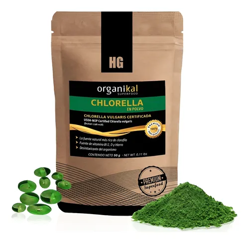 La Chlorella en Polvo Organikal 50 g es un superalimento de origen natural, reconocido por su alto contenido de clorofila, proteínas, vitaminas y minerales.