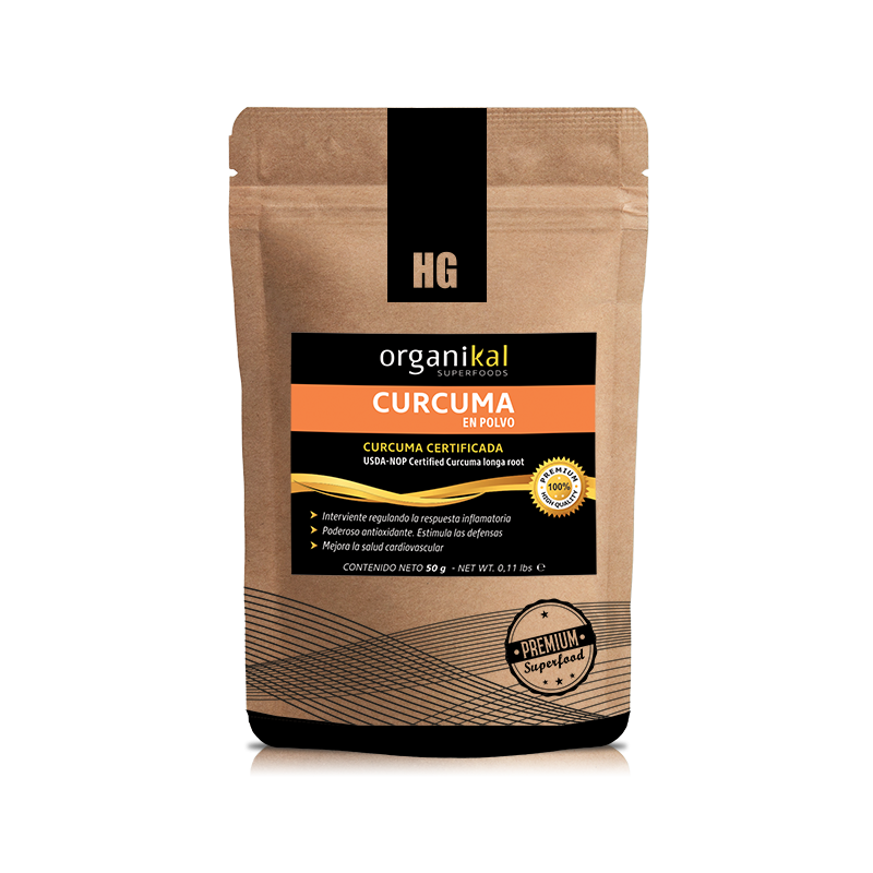 La Cúrcuma en Polvo Organikal 50 g es una especia natural de color intenso y sabor característico, muy utilizada en la cocina saludable.