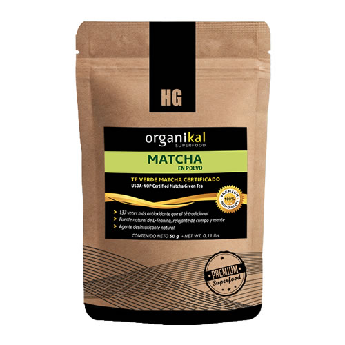 El Matcha en Polvo Organikal 50 g es un té verde finamente molido, de color vibrante, sabor intenso y aroma característico.
