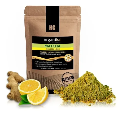 El Matcha con Jengibre y Limón Organikal 50 g combina té matcha con el toque intenso del jengibre y la frescura natural del limón.