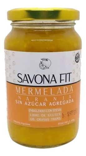 La Mermelada de Naranja SAVONA FIT 400 g ofrece un sabor fresco y auténtico de naranja, sin azúcar agregada, pensada para quienes buscan cuidar su consumo de azúcar sin sacrificar el sabor de la fruta.