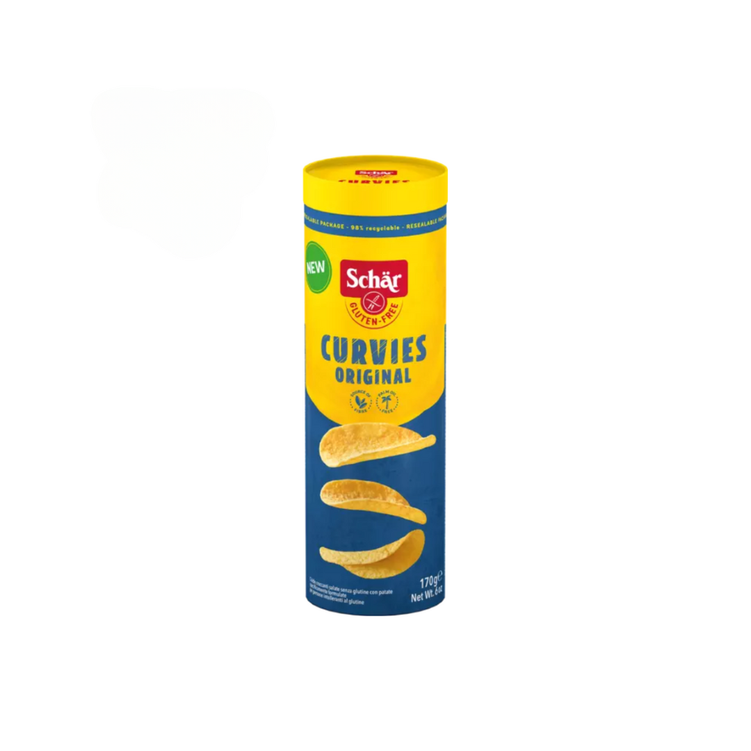 Los SCHAR Curvies Original son un delicioso snack sin gluten, con textura crujiente y sabor clásico. Su forma curvada y su sabor salado los hace perfectos para disfrutar solos, acompañar bebidas o compartir en reuniones y celebraciones.