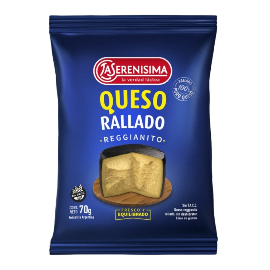 Disfrutá del Queso Rallado Reggianito 70 g de Serenísima, con auténtico sabor a queso argentino, perfecto para realzar tus platos favoritos. Ideal para espolvorear sobre pastas, ensaladas, pizzas, gratinados o recetas caseras, este queso rallado Reggianito combina sabor intenso, frescura y practicidad en cada porción.