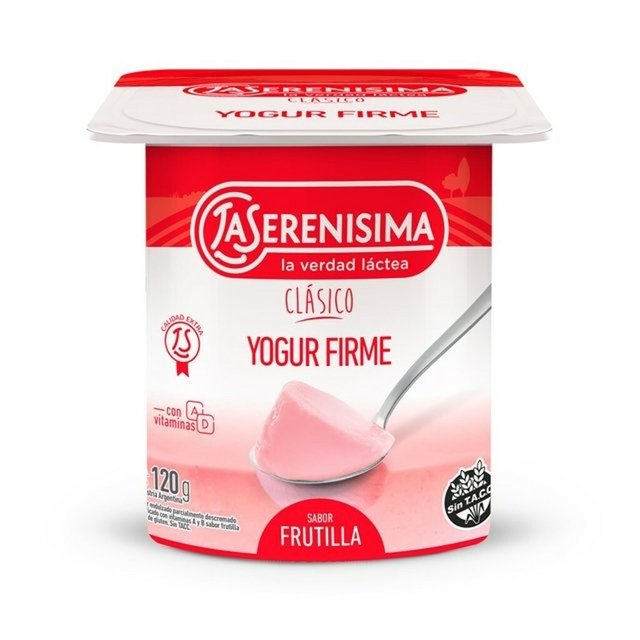 Disfrutá del Yogur Firme Sabor Frutilla 120 g de Serenísima, con textura firme y cremosa y el sabor natural de la frutilla. Perfecto para disfrutar solo, combinar con frutas, cereales o preparar postres caseros, este yogur firme frutilla ofrece proteínas y nutrientes esenciales, combinando sabor, practicidad y calidad en cada porción.