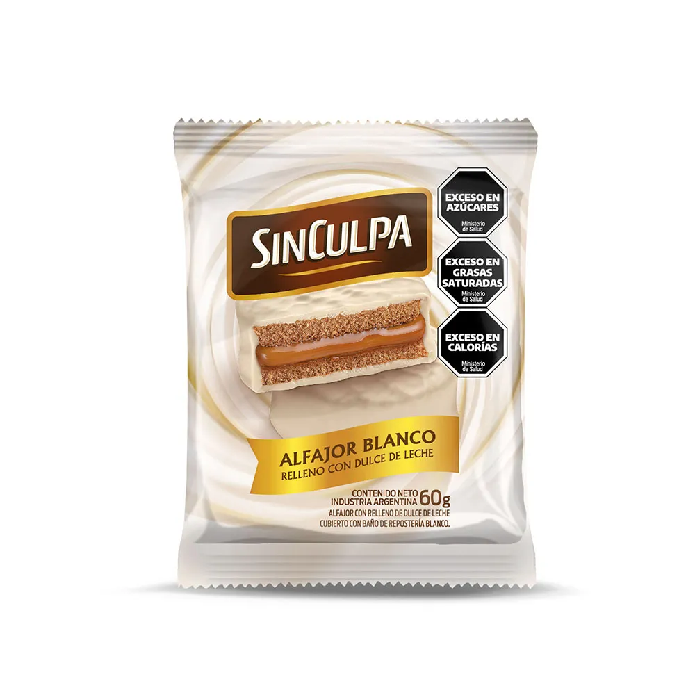 El SIN CULPA alfajor blanco 60g combina la suavidad de su relleno cremoso con la dulzura delicada del chocolate blanco, ofreciendo una experiencia dulce y equilibrada.