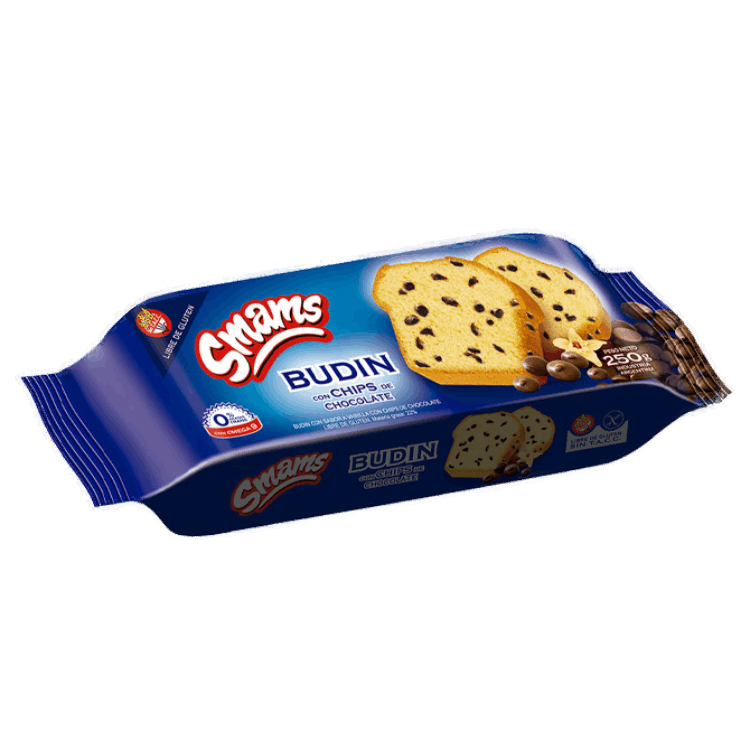 El SMAMS Budín con Chips de Chocolate 250g combina un suave bizcocho esponjoso con trozos de chocolate que aportan sabor y textura en cada bocado. Elaborado sin gluten (Sin TACC), es ideal para desayunos, meriendas o para compartir en cualquier ocasión. Su práctico envase de 250 g lo hace perfecto para disfrutar solo o acompañado, ofreciendo el placer de un budín tradicional en una versión apta para celíacos y más saludable.