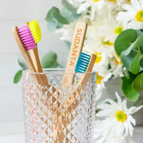 Con los cepillos dentales SUDANTA de bambú, cuidas tu boca y al medioambiente.